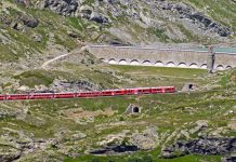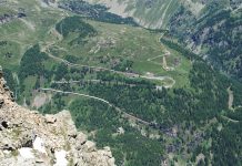 Tra la stazione d'incrocio a Li Stablini, sopra Cavaglia, fino alla Galleria Lunga, a sud del Lago Bianco, il tracciato della ferrovia del Bernina...