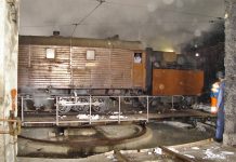 Nella rimessa della stazione a Ospizio Bernina è collocata una delle due piattaforme ancora in servizio che venivano usate per invertire la direzione di...