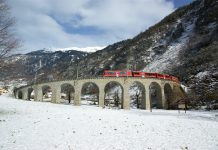 L'inverno 2013-14 si avvicina al termine ma non demorde e si fa notare fino a basse quote. Il viadotto di Brusio innevato a metà...