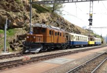 Nei primi due anni d’esercizio (1908/09), la Ferrovia del Bernina acquista 14 esemplari di questo modello di elettromotrice. Le prime motrici sono volutamente gialle...