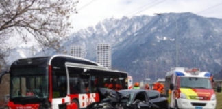 Scontro tra bus e auto a Coira, un morto e vari...