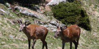 Caprioli in primavera cercano le prime erbette verdi